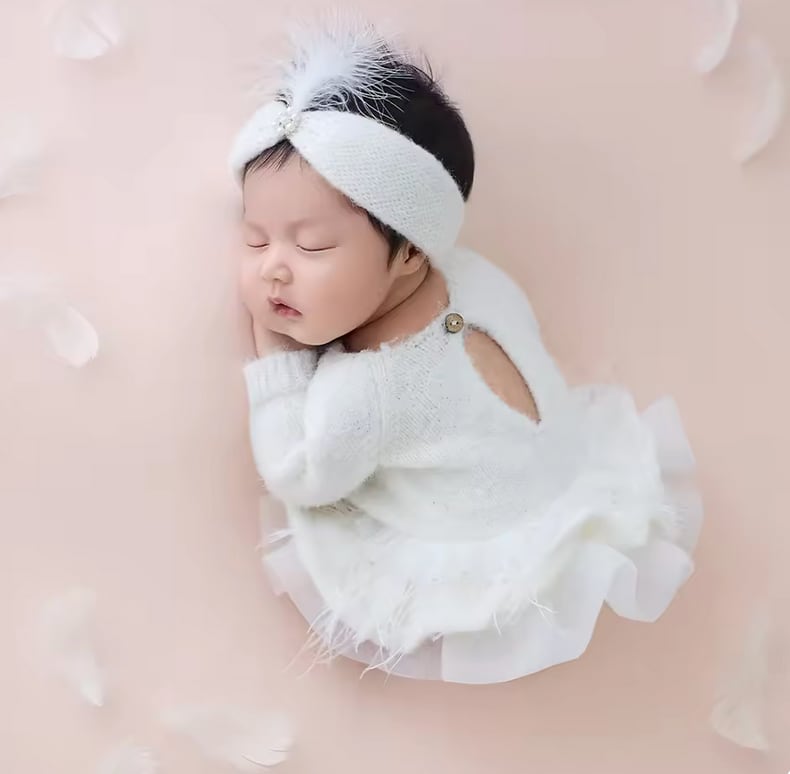 フェザーヘッドバンドがアクセント♡ふわふわ衣装3点set♡ニューボーンフォト