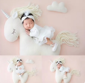 新作衣装3点setは、柔らかなフワフワ素材で赤ちゃんを優しく包み込み、心地よい着心地を実現しています。フェザーヘッドバンドが可愛らしさを引き立て、ゴージャスでおしゃれなお写真を演出します。