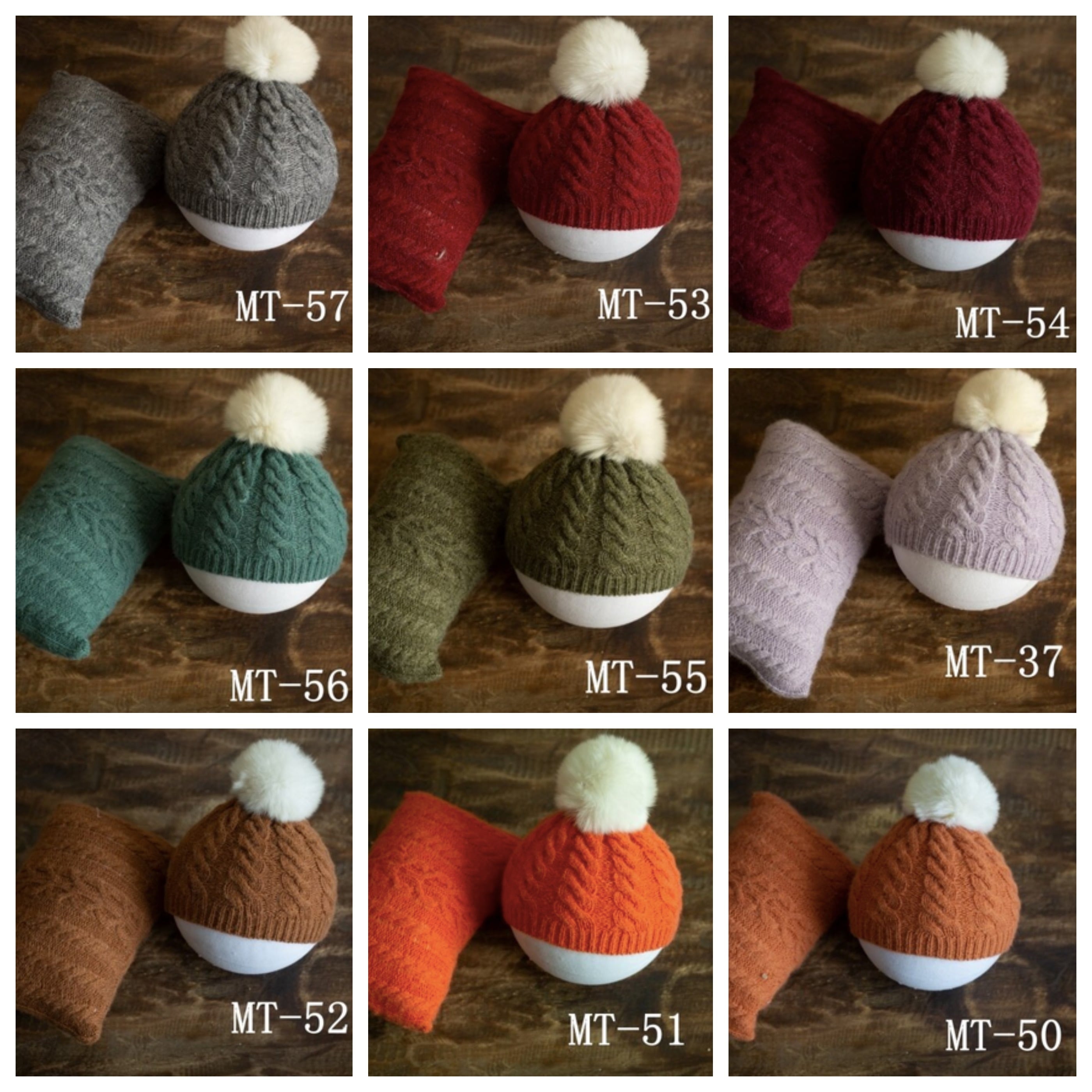 大きめのポンポンとケーブル編みがとても可愛いお洒落な帽子&お揃いのまくらセットです。