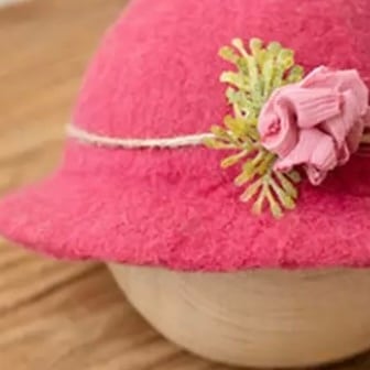 鮮やかな色合いがとても華やかなハンドメイドのフェルト帽子。