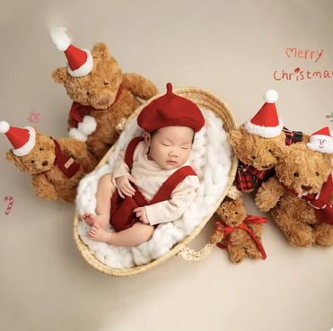 このセットは、特別な瞬間を華やかに演出し、赤ちゃんを一層可愛らしく見せます。上品なベレー帽とロンパースのデザインが、心温まる思い出を作り出します。